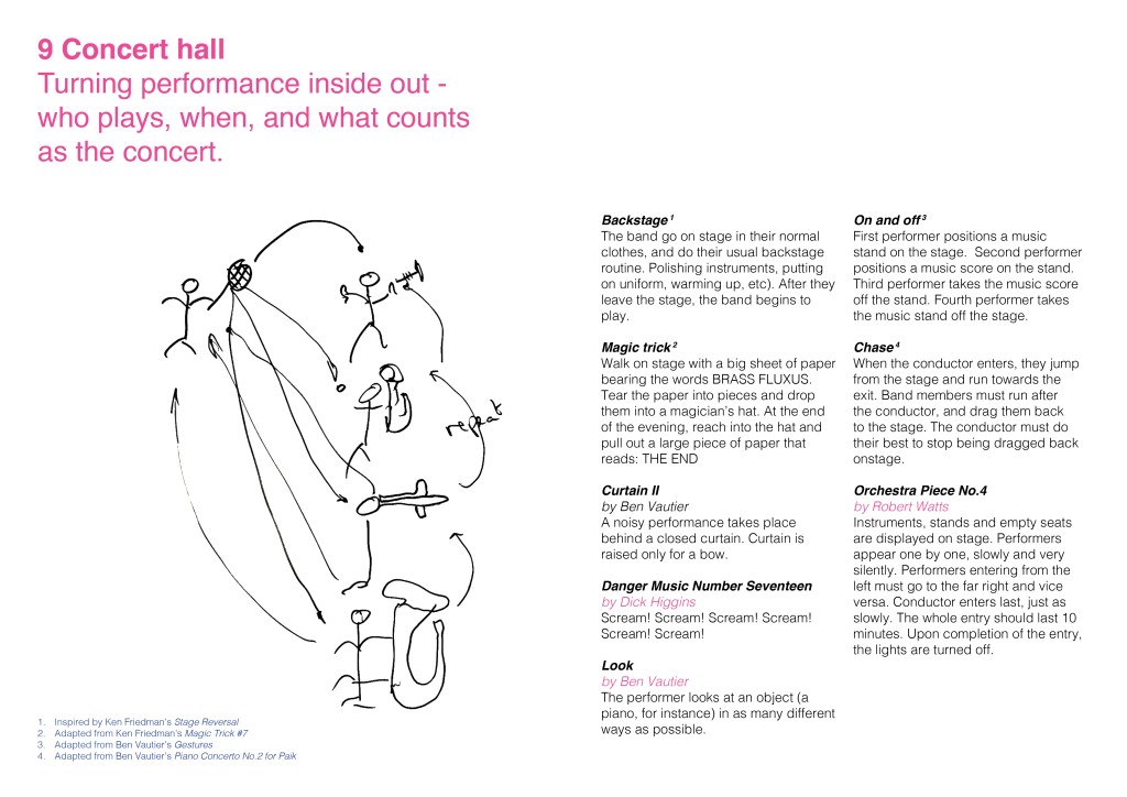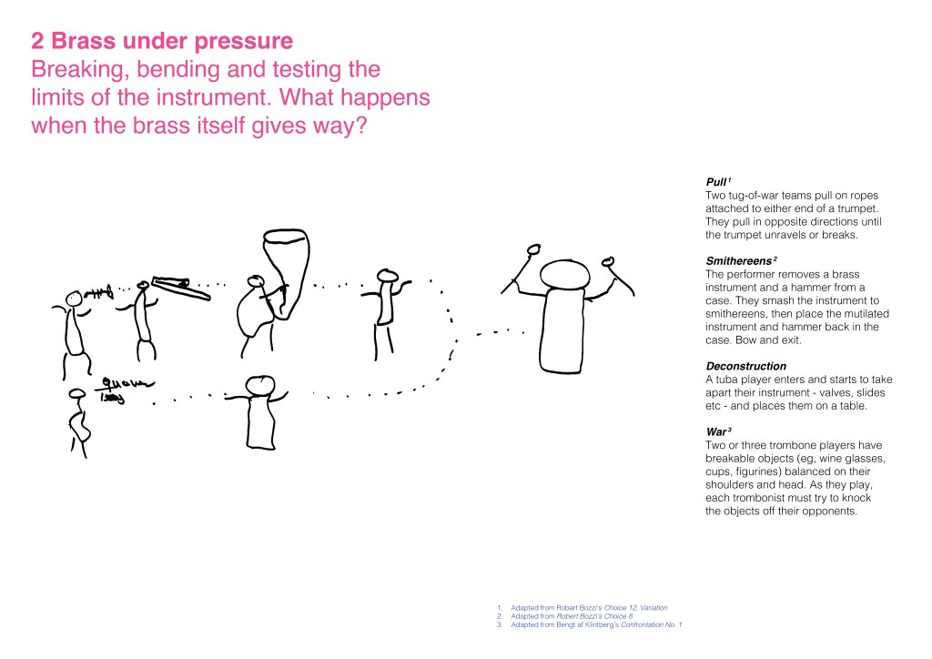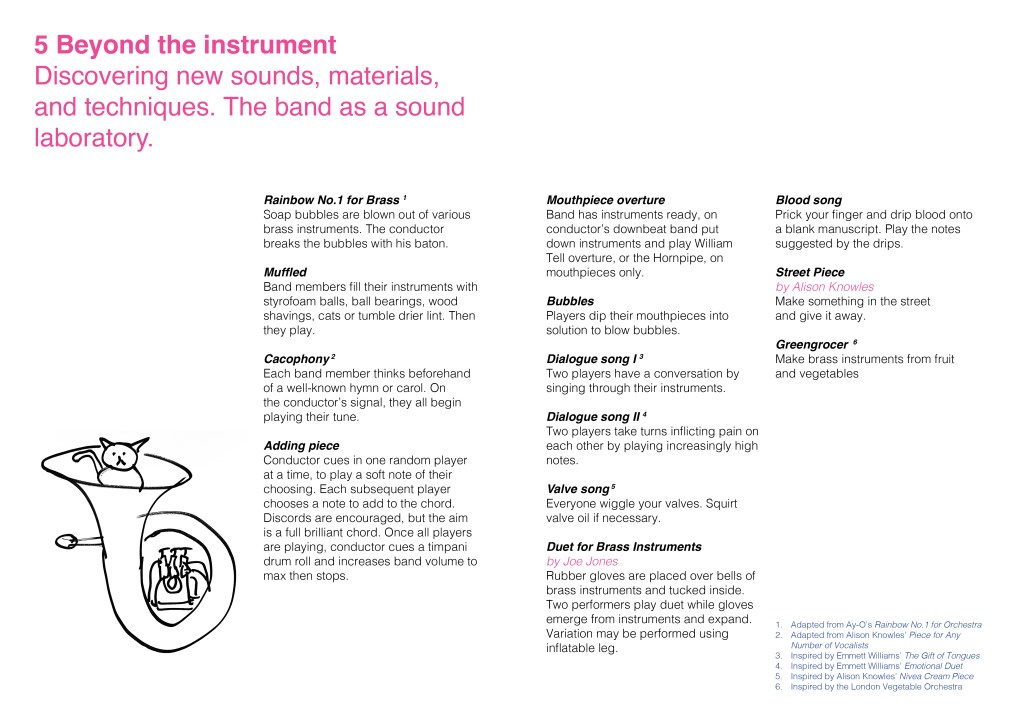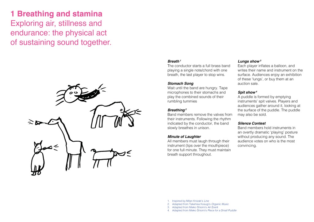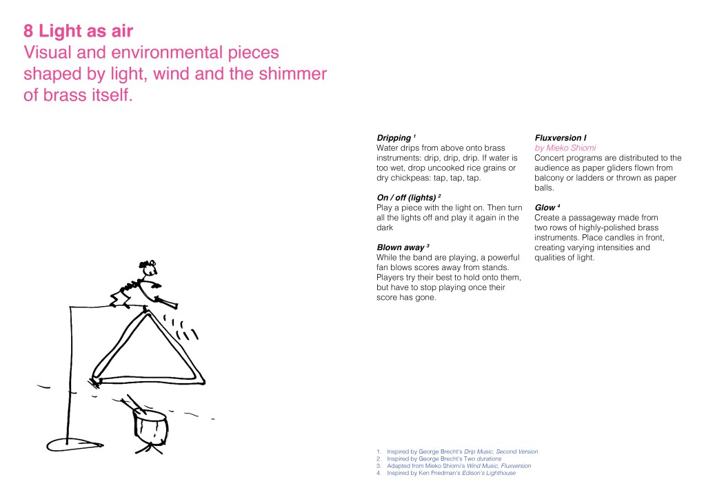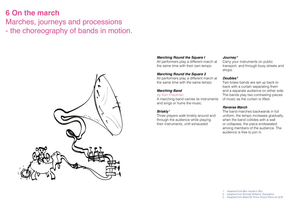 After making imaginary animals out of tin foil and thinking up impossible brass bands, we focused on the work of Fluxus, the international collective of artists and performers during the 1960s and 70s. This resulted in BRASS FLUXUS, a book of creative instructions for banding inspired by the Fluxus Performance Workbook.